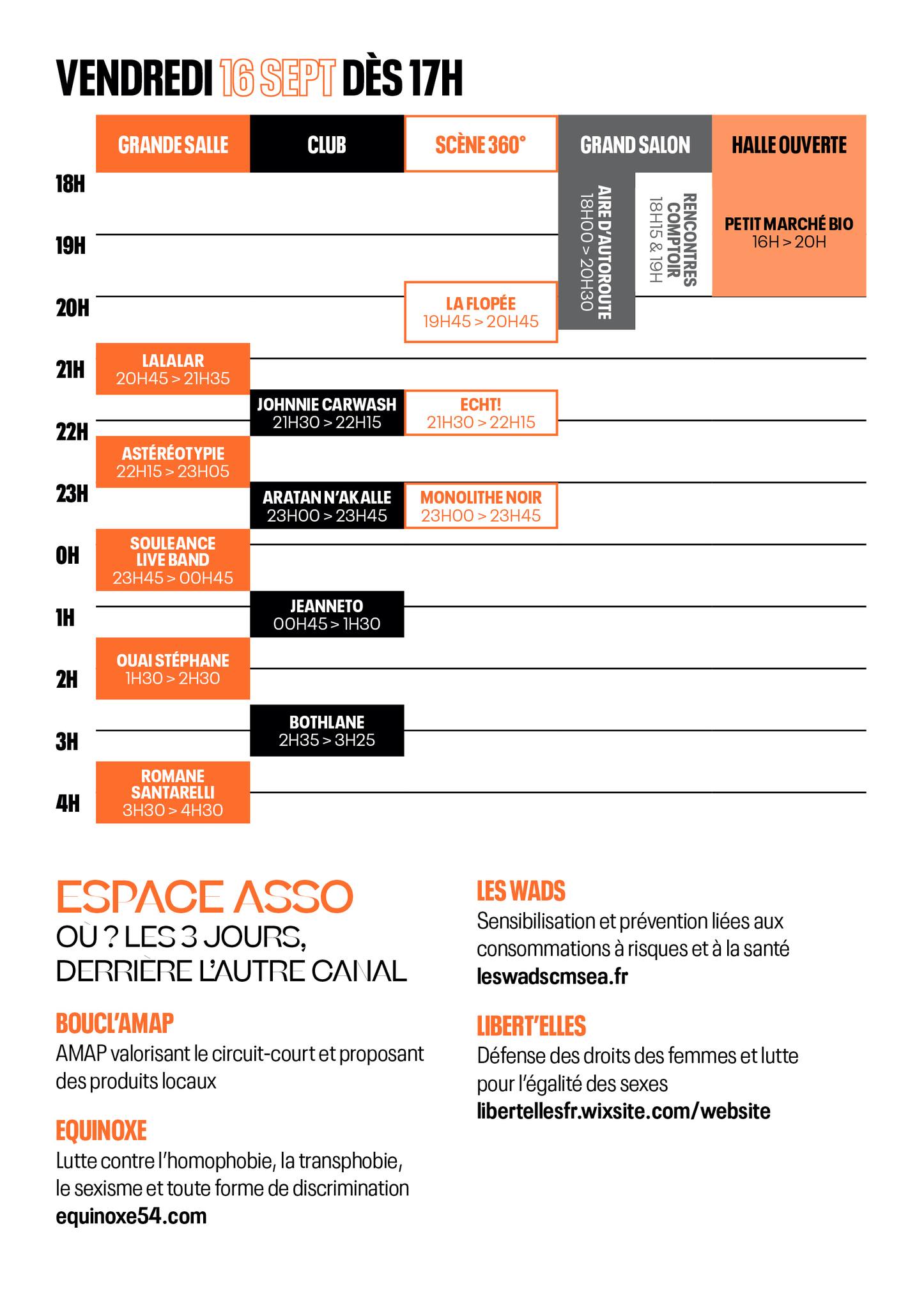 Grande salle : Lalalar • Astéréotypie • Souleance Live Band • Ouai Stéphane • Romane Santarelli