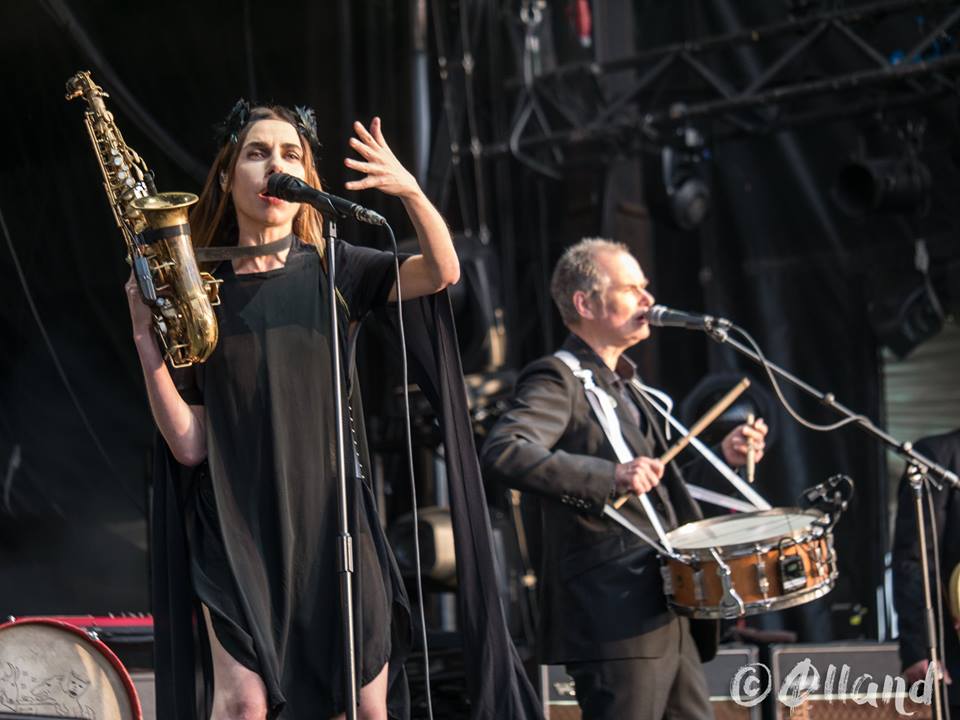 Voilà, après des années d’infructueuses tentatives pour la faire revenir, PJ Harvey est enfin de retour à Saint-Malo. LA tête d’affiche du weekend, icône indie et intouchable succube de la musique depuis près de vingt ans et une première pour ma part. Exit les guitares, c’est sur un tempo de marche militaire que ses musiciens (dont on notera les présences de luxe de John Parish et Mick Harvey) apparaissent sur scène. Elle, suivra quelques minutes après une longue introduction instrumentale.Une entrée monacale, , métronomique qui démarre sur les airs du dernier album dont l’Adn imprègne véritablement le plateau. Une ambiance assez étrange, une sensation encore inconnu, sorte d’intrigue musicale à la Bjork suspendant le temps. Peu de mouvement dans la foule, s’impose rapidement un constat de forme de respect du public. Comme celle d’écouter une papesse sonore revenue enfin en terre promise. Qui osera bouger une oreille devant PJ la gorgone de Yeovil ?