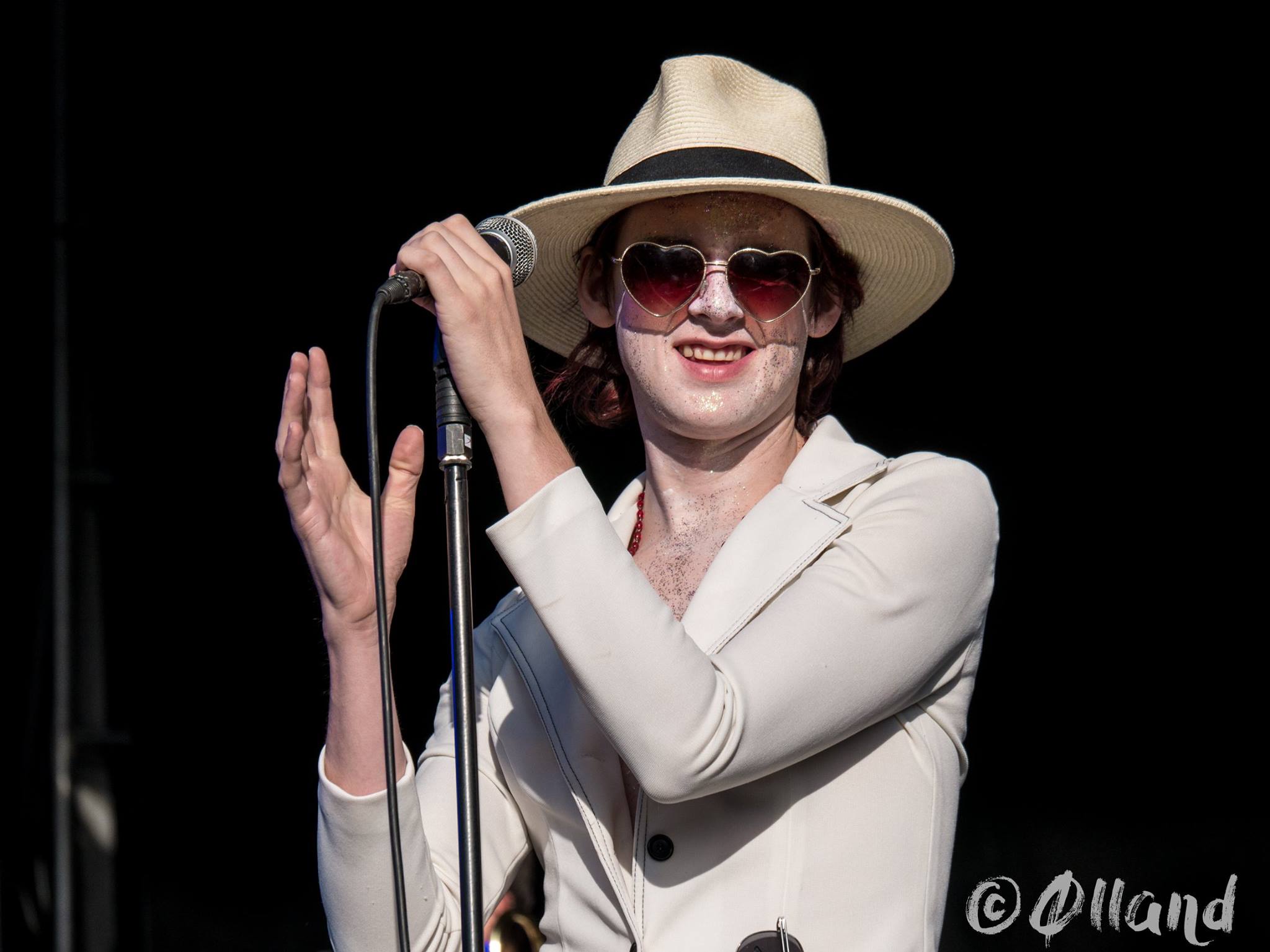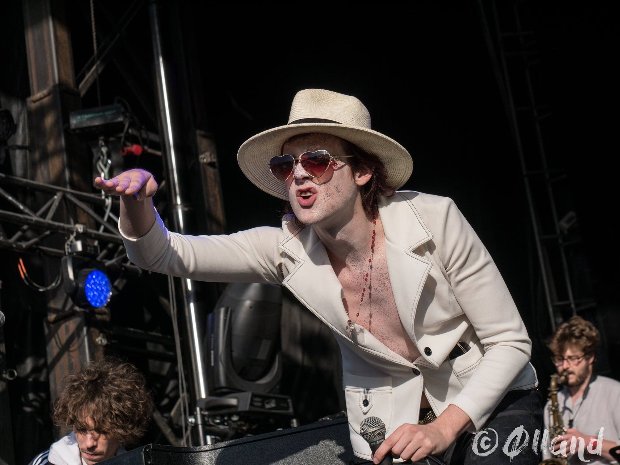 Mon seul souvenir de Foxygen en live fut leur prestation nocturne et chaotique devant un public de quelques centaines de curieux à Belfort en 2015. Des flashback d’un groupe et de son leader d’une excentricité totale, des musiciens hyperactifs qui m’avaient totalement perdu avec leurs costumes flashy, leurs 3 danseuses et une section cuivres en freeplay complet sur des morceaux méconnaissables. « Est-ce vraiment eux les Auteurs de San Francisco ? Me suis-je trompé de scène?, « Est-ce j’adore ou je déteste ces mecs ? » Furent mes principales questions à cette époque. Foxygen avait réussi son pari fou de me perdre positivement et de me donner envie de replonger dans leur discographie. Ma curiosité malsaine était donc à son comble avant ce show cette fois ci en après-midi, deux ans plus tard. Etait-ce un soir de folie ou de « je m’en foutisme » totale du groupe devant le peu d’attention de l’audience ou était-ce véritablement le pain quotidien de ces trublions ?