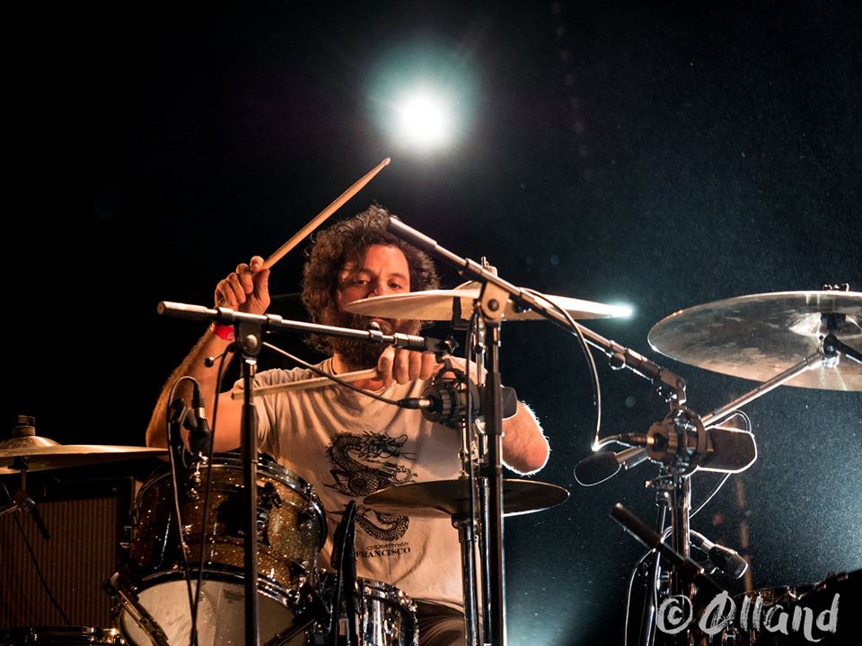 Thee Oh Sees, Oh Sees et depuis quelques jours OCS, le groupe californien (encore un !) dont l’existence est le fruit mûr de son leader charismatique et imperturbable John Dwyer, était à notre plus grand plaisir (4ème fois de l’année pour ma part) encore là pour nettoyer lescages à miels. Conducteur du train le plus fou du Garage/Psych/Punk/Psych/theFuckyouWant Band actuel, John accueille son audience dans son traditionnel top à rayures, accompagné de sa SG en acrylique et aluminium raz des épaules. En Stewart de luxe de cette folie, un bassiste et ses deux batteurs live (bien mis en avant) devenus depuis plusieurs mois le fer de lance du nouveau son du groupe lors des shows.