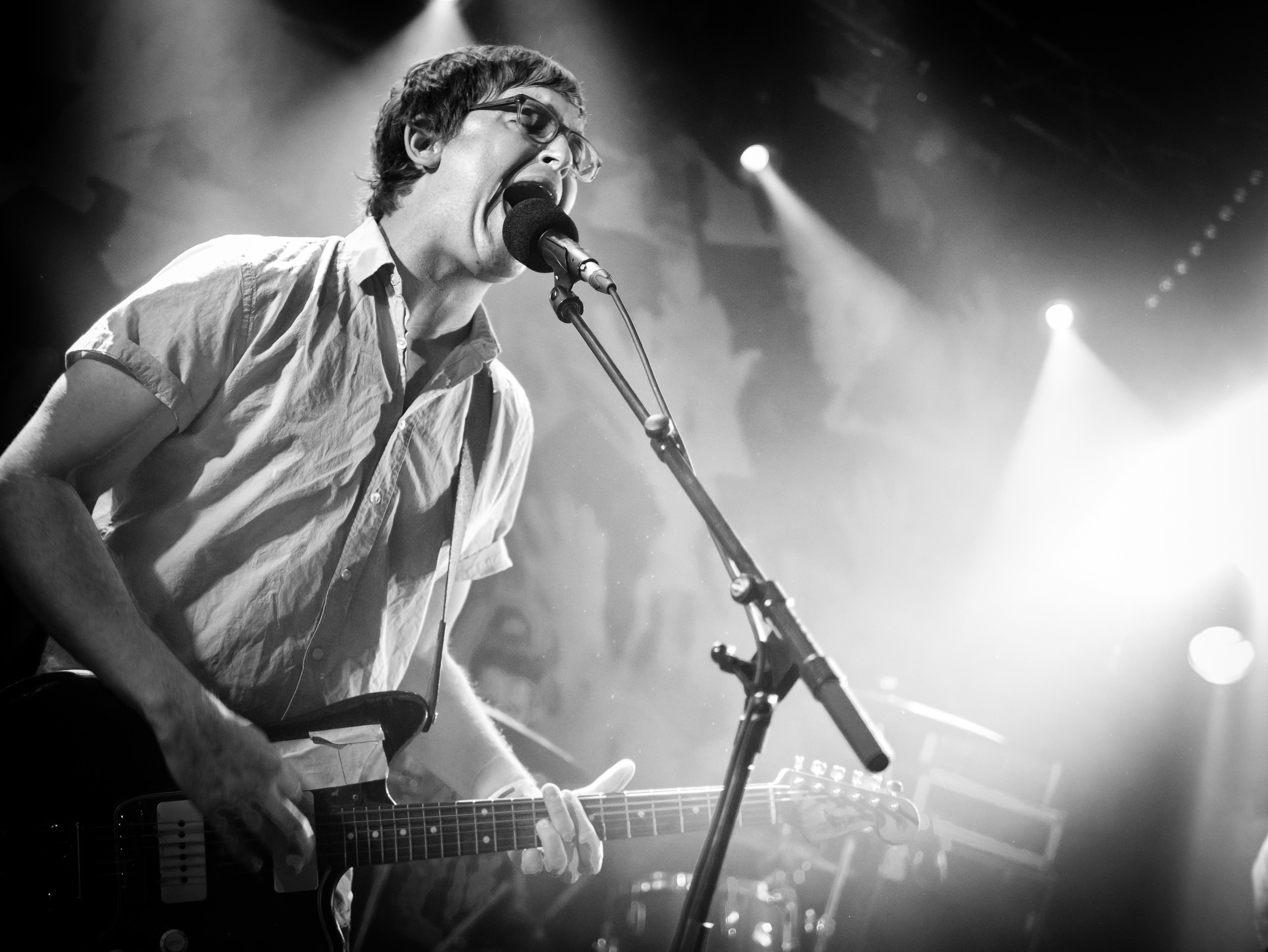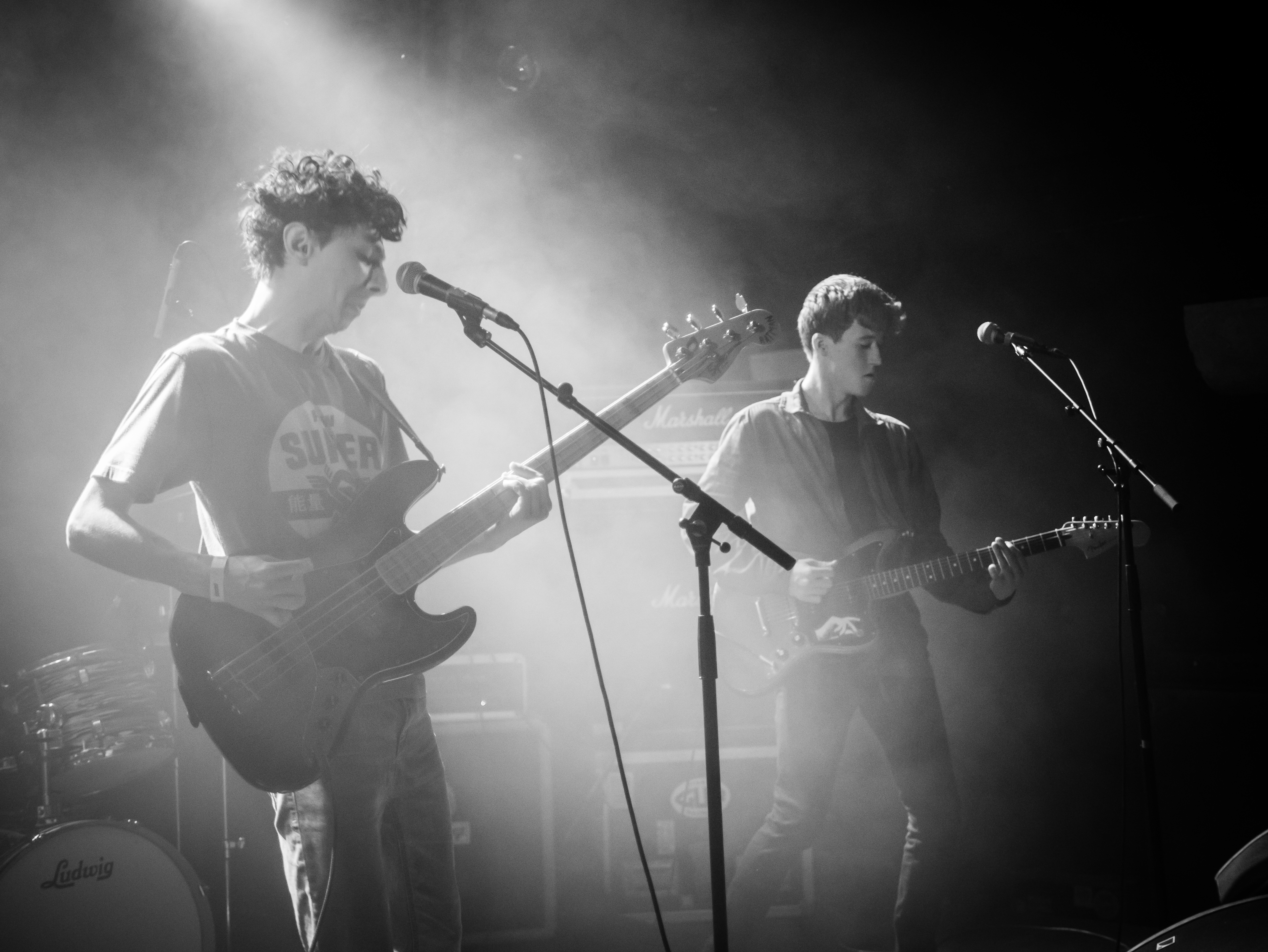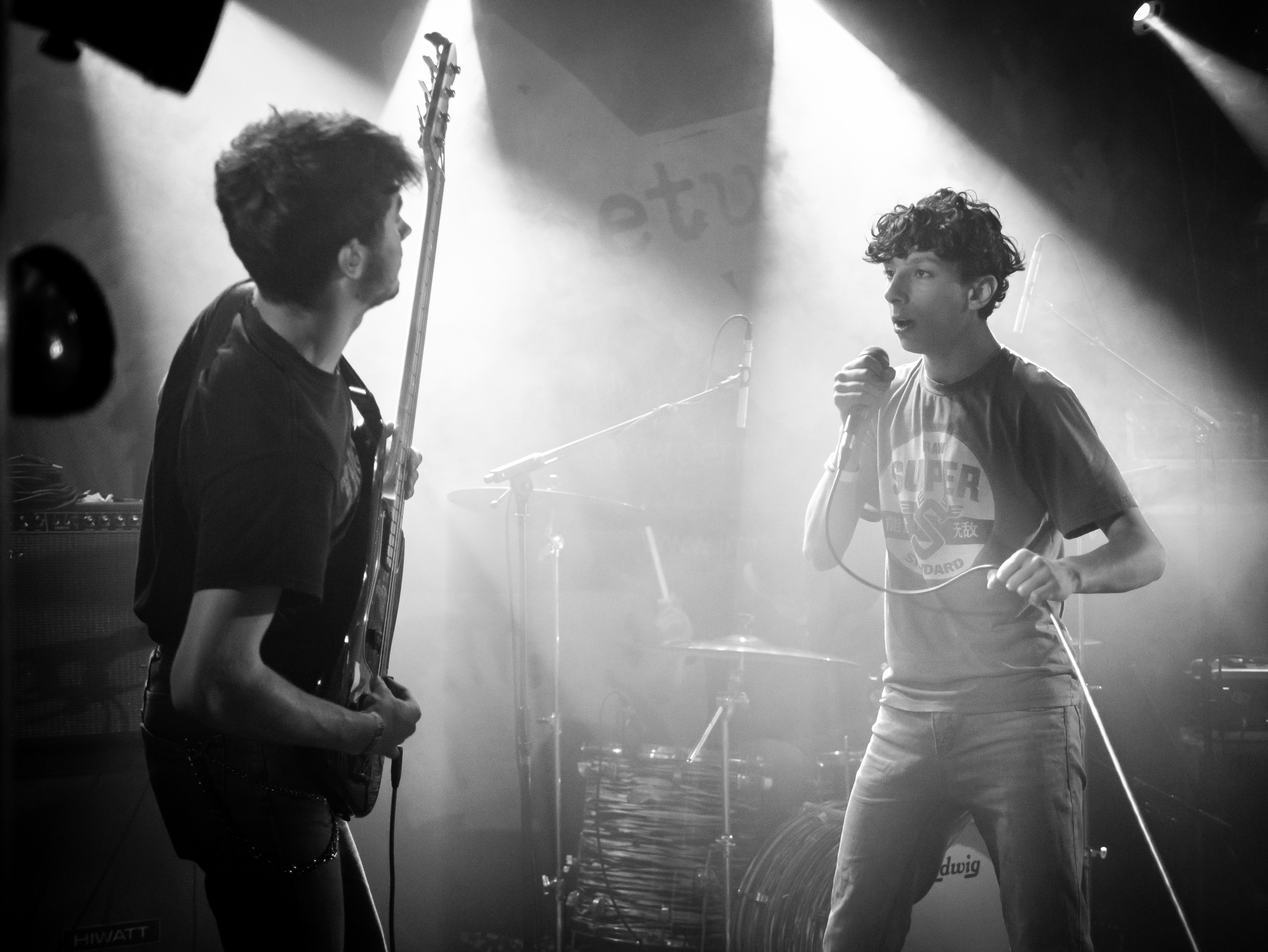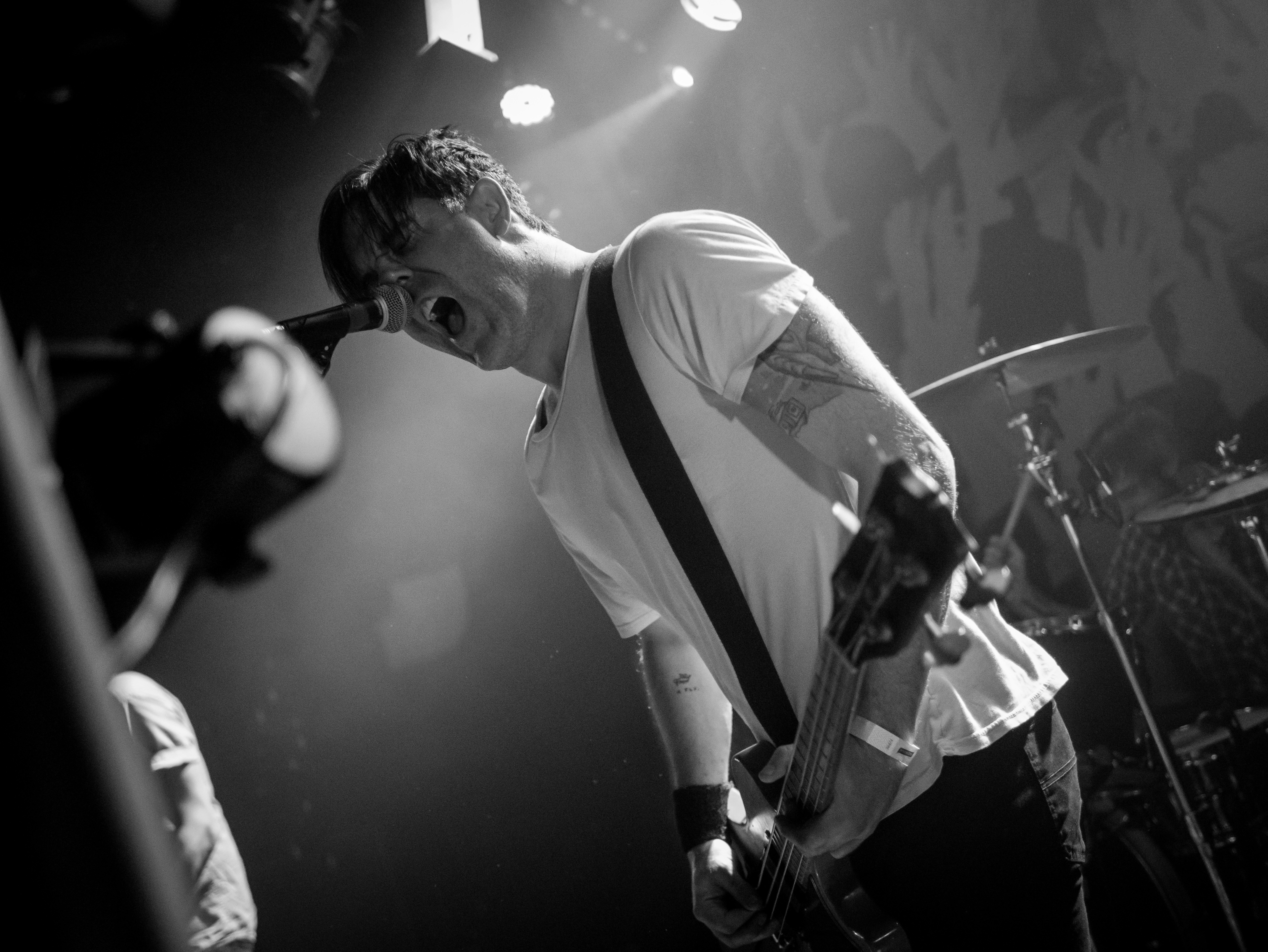 Aussi charmant en off que violent sur scène, Alex Edkins le chanteur et guitariste du groupe mouille la chemise dès les premiers morceaux et livre un set corrosif. Une prestance remarquable proche de la folie et un engagement total à son noble art. Art qualifiable de « Post-ce que vous voudrez » mais avant tout d’engagement Punk, dont la qualité et l’objectif vont in fine, vous déstructurer gentiment. Derrière les fûts, avec une frappe de colosse et un jeux de main sec et précis qui l’amène souvent à être comparé à Dave Grohl (jeune), Hayden Menzies arrache la moquette derrière son kit pourtant simpliste. Forcé de constater que les différents lives que l’on à pu voir sur le net ne mentent pas, le groupe envoi les décibels.