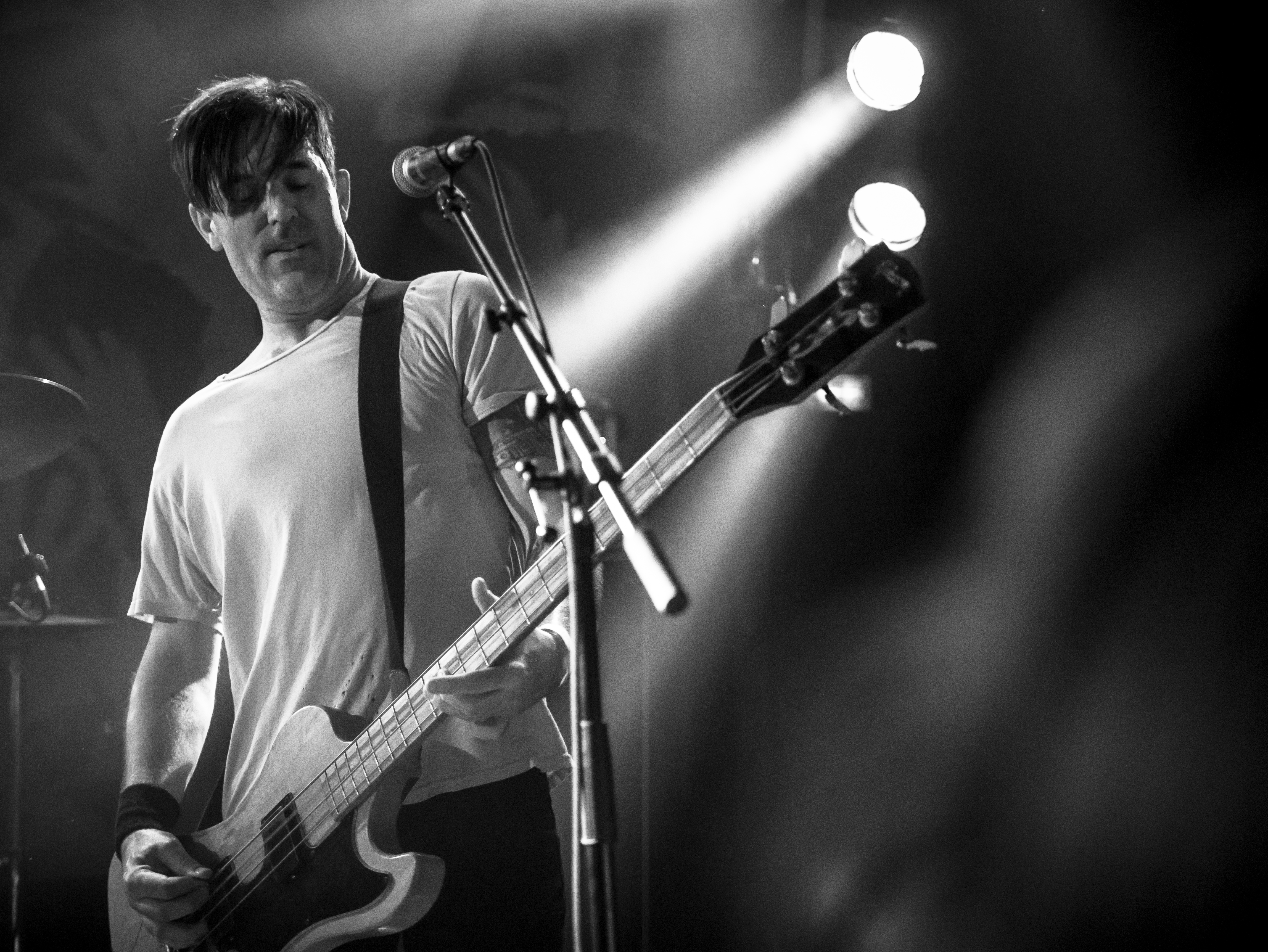 Moins précis que sur disque (exemple flagrant sur Drained Lake) le groupe gagne cependant en virulence et en force de frappe. On s’en prends encore une fois plein la tête, hausse de température constante, parquet balbutiant et public de convertis touchés en plein coeur qui n’hésite pas à s’entrechoquer les troncs sur les coups de caisse claire et des riffs saturés des canadiens. Chris Slorach sur le côté gauche n’est pas en reste et fait vrombir ses cordes vocales et son inhabituelle basse Gibson accentuant encore l’agressivité des différentes tracks avec son picking puissant et ses back-ups sauvages.