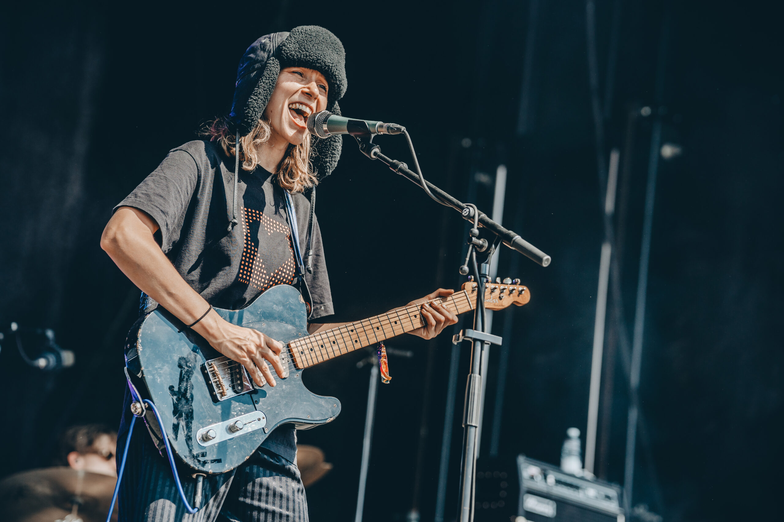 On démarre cette dernière journée du Maifeld Derby sur le tard, faute à une météo encore plus ensoleillée que la veille. La température n’empêchera pourtant pas la sensation Indie-Pop anglaise Sorry, de venir jouer sur la grande scène extérieure du festival. Pire, la chanteuse menue Asha Lorenz a encore conservé sa chapka des derniers shows du début d’année et conserve toujours une attitude de front-woman timorée. On ne lui en voudra pas, difficile de se mouvoir sous ce soleil de plomb.