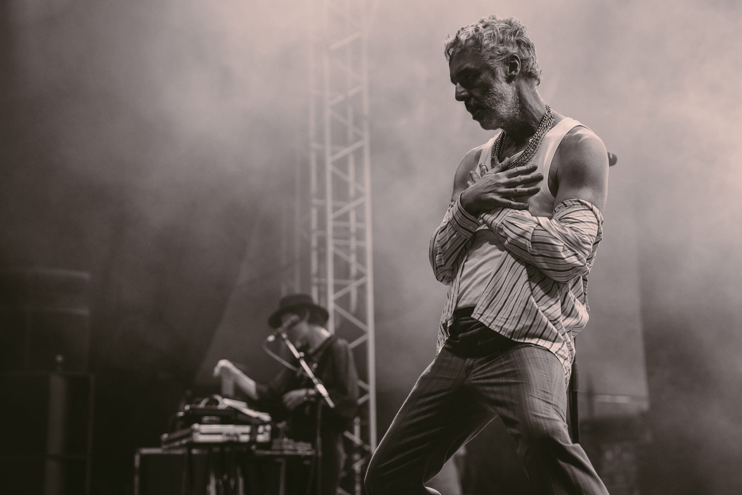 Baxter ce diable de show man de la perfide Albion est un sacré séducteur dans l’âme. Accompagné de sa numéro deux féminine depuis une belle décennie, à savoir Madelaine Hart. Elle se fait plus discrète aux claviers et vocalise sous un chapeau tout aussi british de sublime de sa voix plus fine, les graves animal de Dury. Le Ying et le Yang, un bel équilibre scénique. La première grosse claque de la journée !