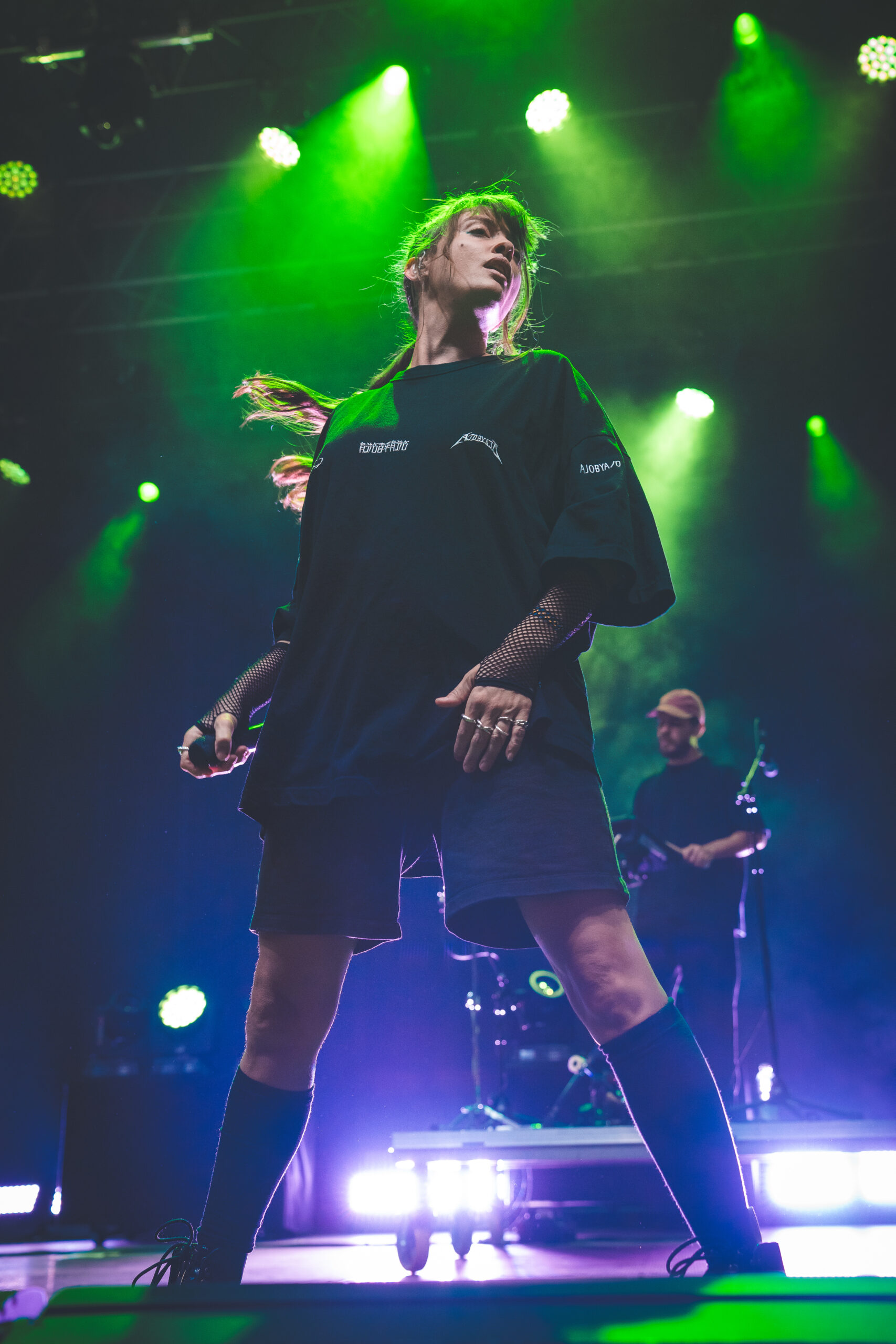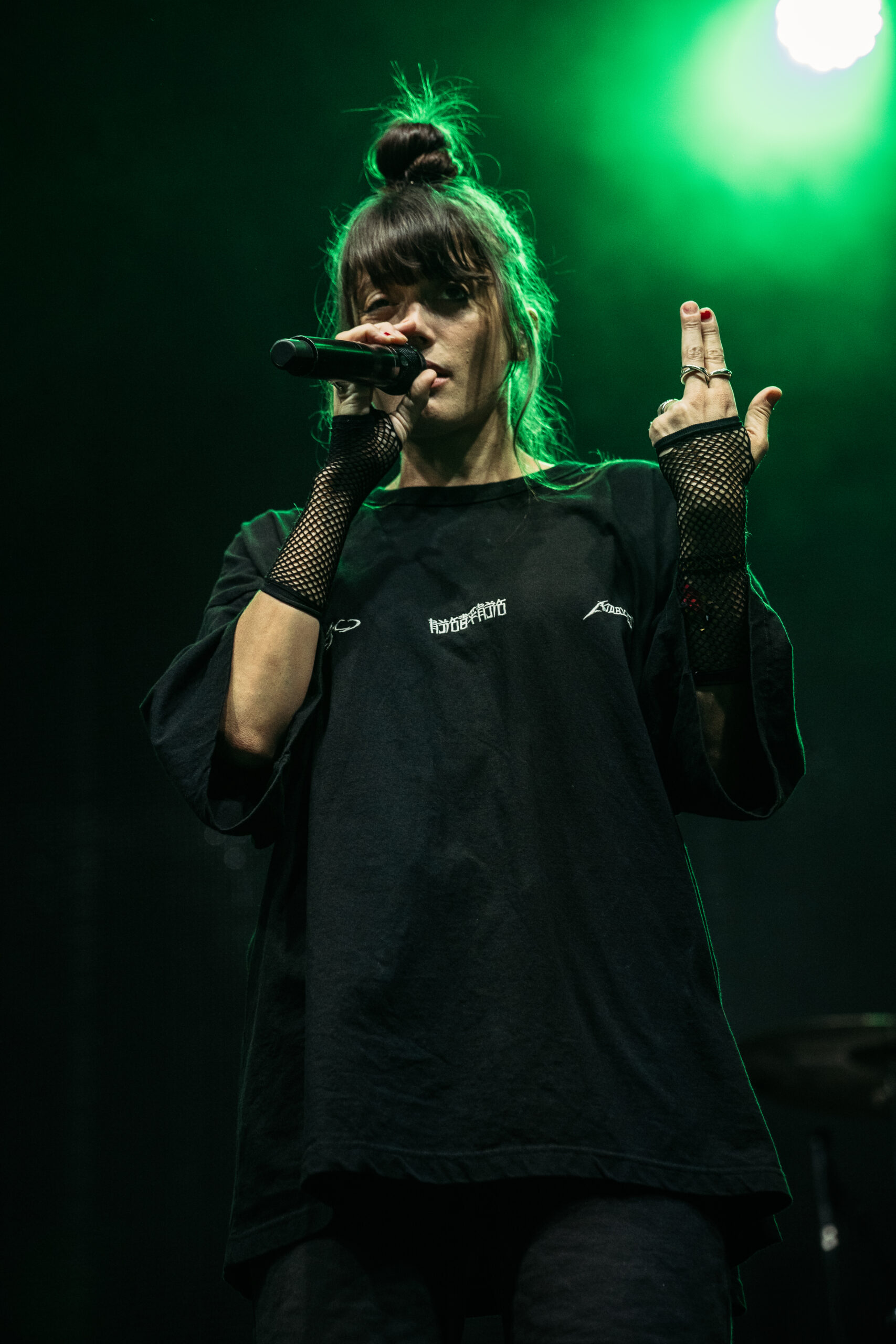 Sur scène, toute de noir vêtu et en mode urbain, Noga évolue seule de part en part de la scène entre phases chantées et rappées. Derrière elle, des productions trap s’entremêlent de pistes plus Pop. Un set qui arrive à mixer une certaine sensualité, des lyrics intimistes comme plus politique à travers une performance brûlante sous une lumière vive teintée de vert.