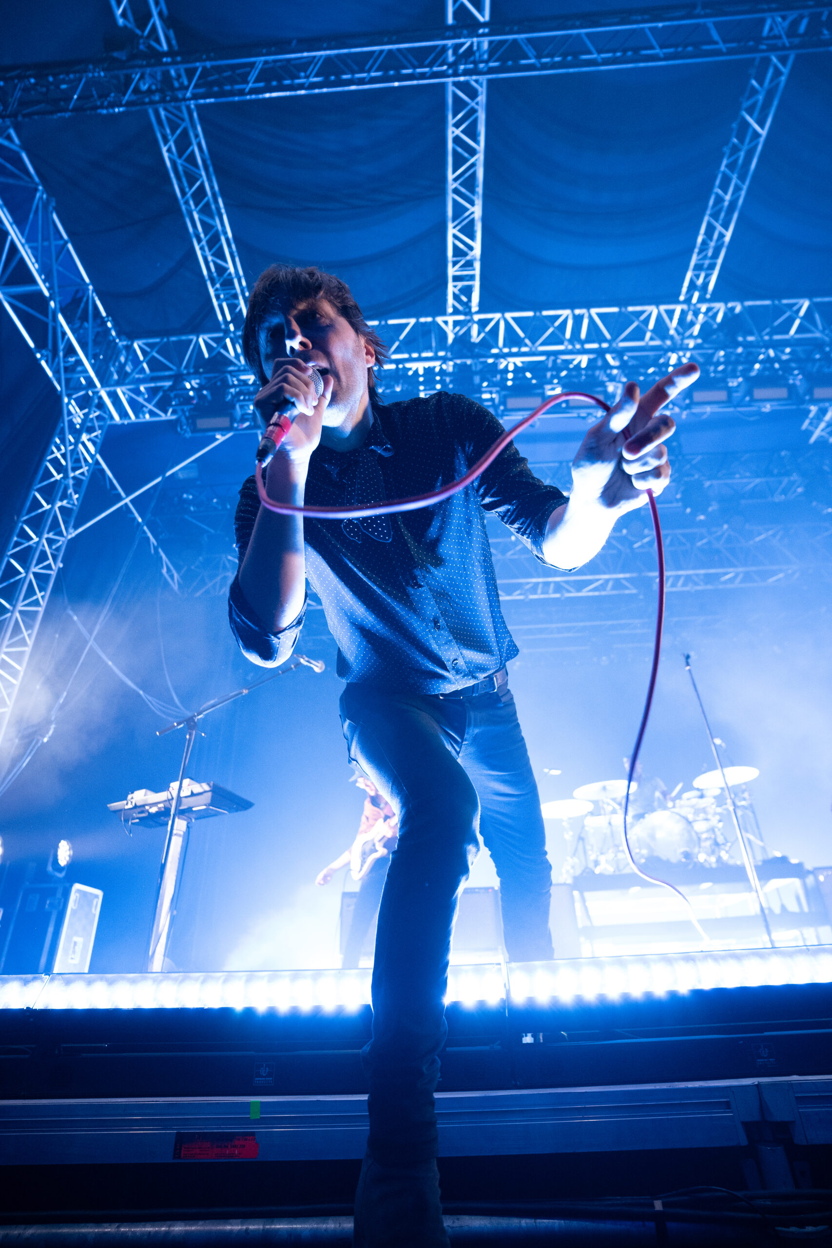 On se dirige sous la tente désormais noire de monde pour finir la soirée en beauté avec nos petits Versaillais de Phoenix. En pleine tournée pour la promotion de Alpha Zulu, dernier album paru. Nous ne sommes pas surpris de voir le quintet enchaîner les tracks de ce dernier album sur scène donc.